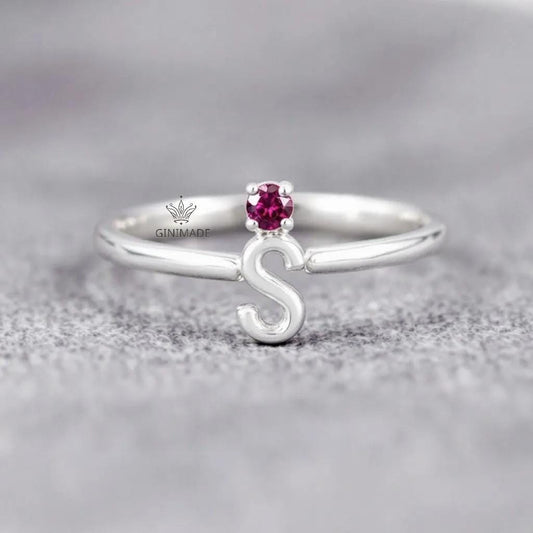 Custom Initial Birthstone Ring • CZ Personalized Letter Ring • Dainty Stacking Jewelry • Graduation Gift • Gift for Her • Proposal Ring
