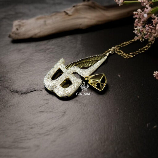 Custom Gold Initial B Pendant with Angel Wing – Iced Out Letter Charm Necklace for Men & Women.