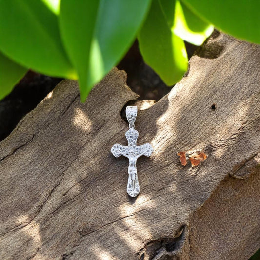 Handmade Brass Cross Pendant with Oxidized Silver Finish – Textured Crucifix Religious Jewelry for Men & Women.