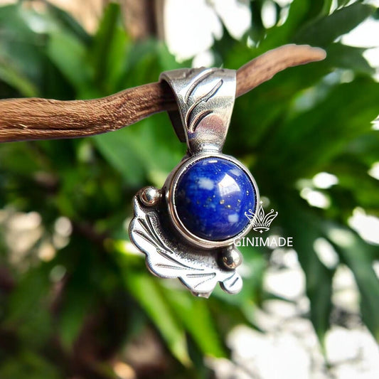 Lapis Lazuli Pendant Necklace – Vintage Boho Silver Filigree Jewelry – Handmade Blue Gemstone Charm – Statement Necklace for Women.
