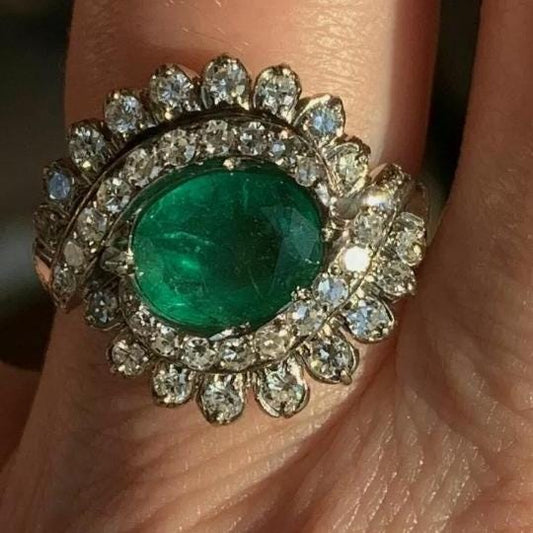 Luxury Natural Emerald and Lab Grown Engagement Rings , with 10k solid yellow gold, valentine Gift for her.