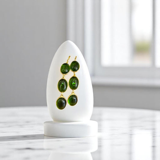 Lush Green Drops – 3-Stone Brass Earrings – Handcrafted Bohemian Chic.