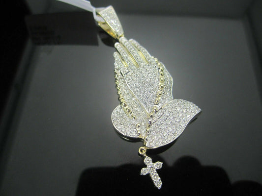 Men's Praying Hands Rosary Necklace, 925 Silver & CZ Diamonds