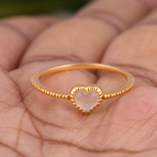 Natural Rose Quartz Gemstone Ring, Minimalist 10K Gold Women’s Ring, Valentine’s Day Gift, Love-Inspired Jewelry.