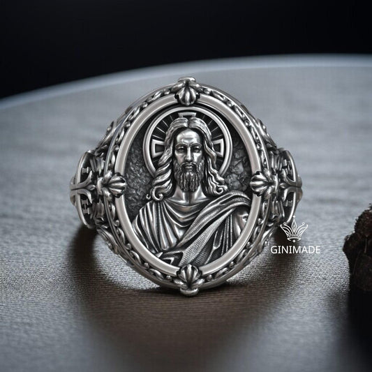 Personalized Jesus Christ Signet Ring | Sterling Silver Religious Ring for Men | Christian IHSV Cross Engraved Ring | Faith Gift for Him