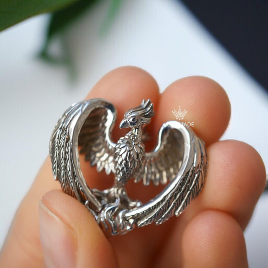 Phoenix Rising Pendant Necklace | Sterling Silver Phoenix with Golden Flames | Rebirth & Strength Jewelry | Gift for Him and her | GiniMade