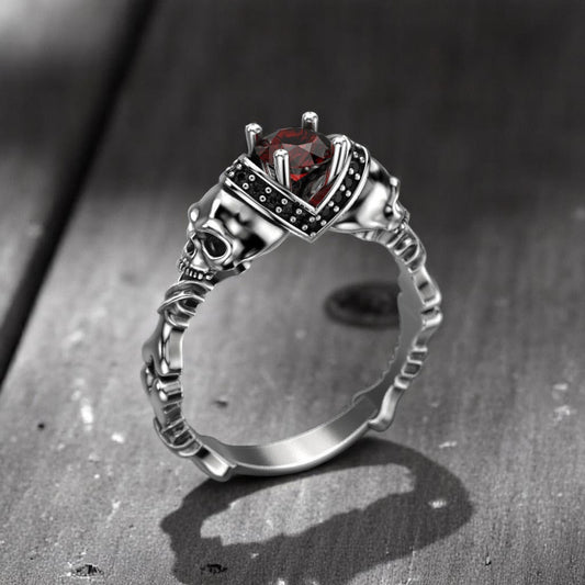 Skull Ring with Hessonite Garnet • 925 Sterling Silver Gothic Ring • Unique Skull Jewelry for Men & Women • Halloween Wedding Ring