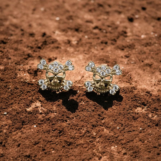 Skull Stud Earring For Her in 18K Yellow Gold Plated with Round Cut CZ Diamond | 925 Silver Punk Jewelry