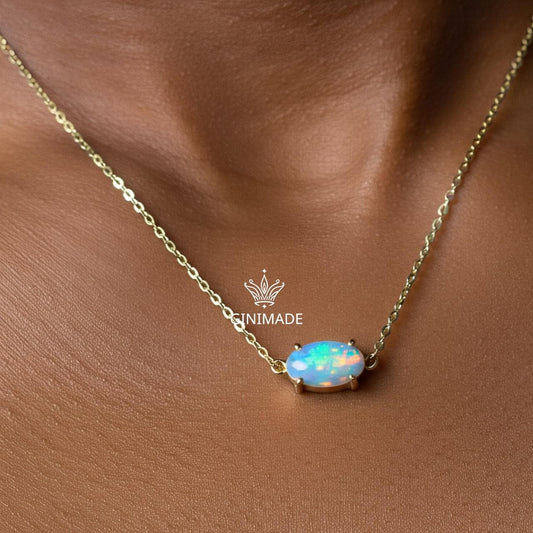 Tiny Opal Gold Necklace – Dainty Oval October Birthstone Pendant | Minimalist Gold Jewelry | Bridesmaid Gift | Birthday Gift for Her