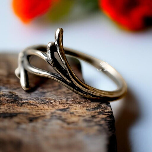 Twig Branch Ring in 925 Sterling Silver – Nature Inspired Adjustable Statement Ring for Women | Forest Jewelry | Ginimade Handmade Ring