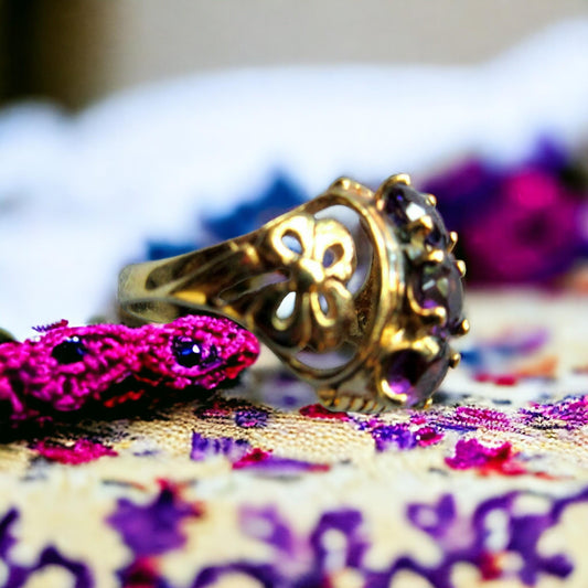Vintage Gold CZ Diamond & Ruby Ring | Victorian Starburst Ring | Antique Style Pink Gemstone Ring | Bold Statement Jewelry for Her