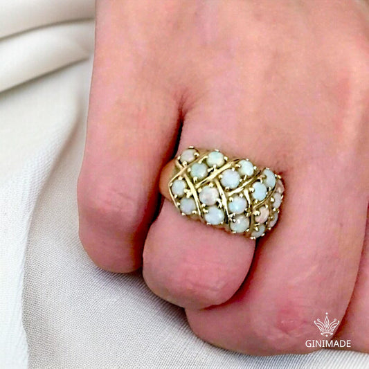 Vintage Opal Cluster Ring Gold Plated | Retro Dome Cocktail Ring for Women | October Birthstone Statement Jewelry | 925 silver Opal Ring.
