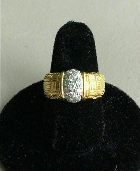 Vintage Style Silver Ring • Woven Textured Band with CZ Diamonds • Bold Statement Ring for Men & Women • Gold Plated Gift Jewelry