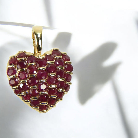Vintage Gold Heart Pendant | CZ Ruby & 925 Silver | Gift for Her