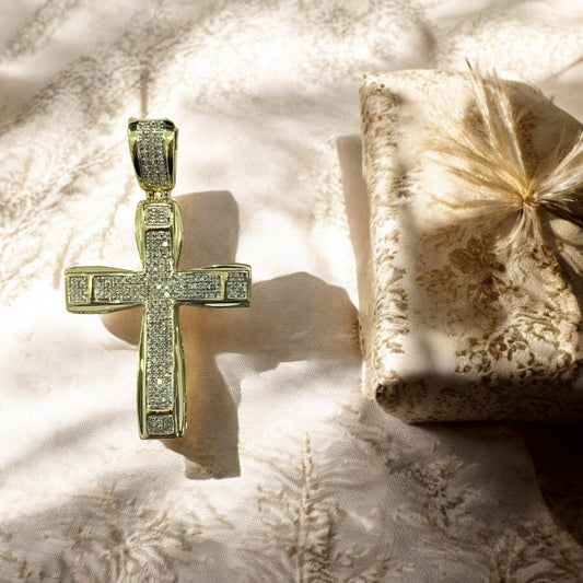 Men's Dome Cross Pendant – 18K Gold Plated 925 Silver CZ Diamond Religious Jewelry Gift for Him
