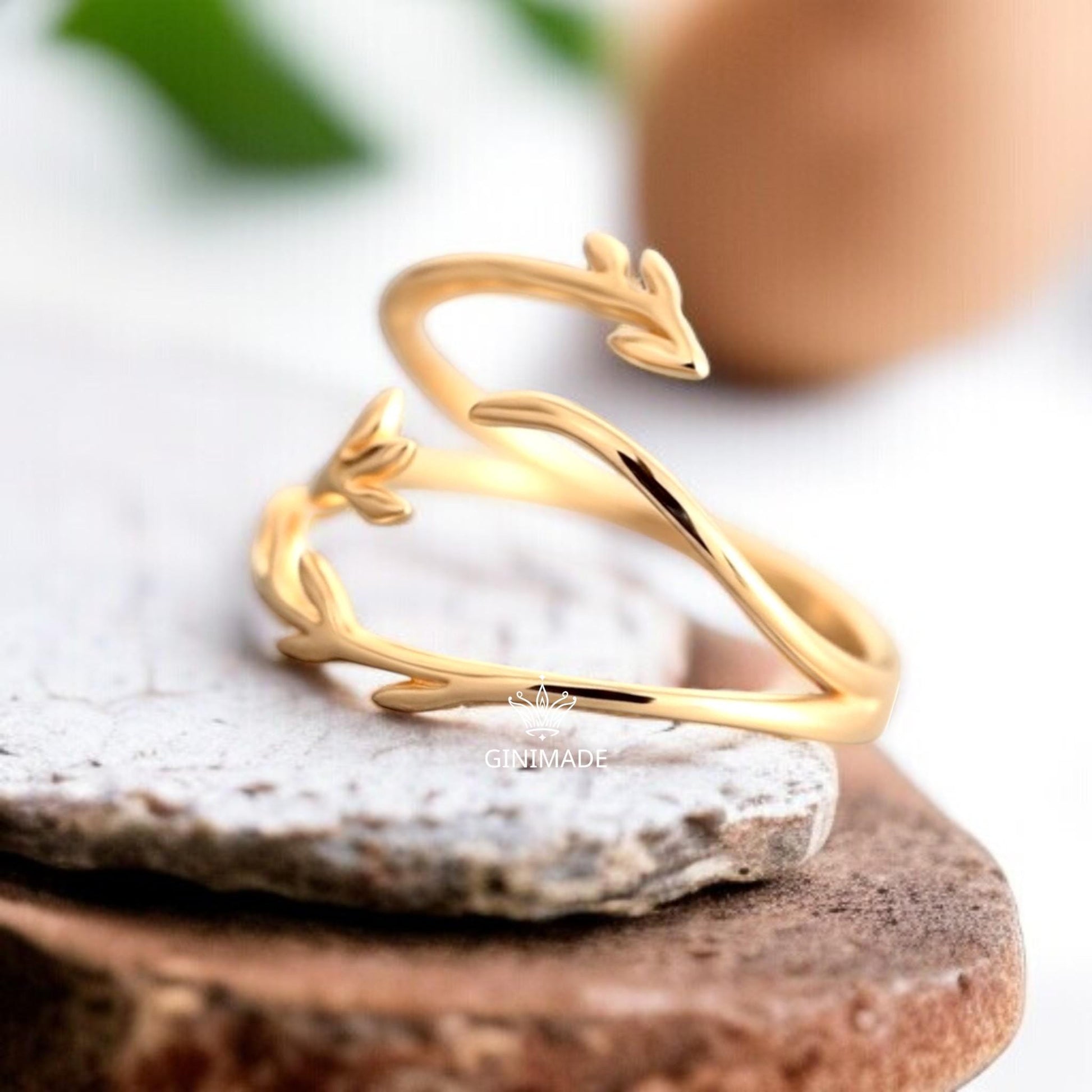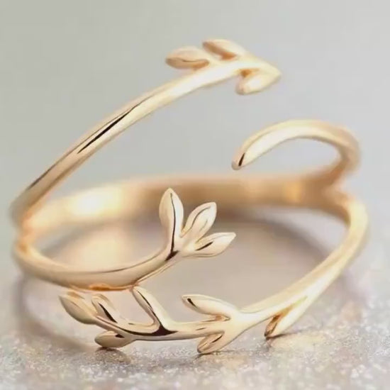 Bring a whisper of nature’s beauty to your fingertips with this elegant adjustable gold leaf wrap ring. Inspired by delicate forest branches, this open band ring wraps around the finger in a graceful and feminine design.