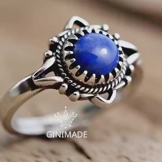 Discover the beauty of handcrafted design with this stunning Boho Lapis Lazuli Ring. Set in solid 925 sterling silver, the deep blue round gemstone reflects a vintage charm with natural bohemian elegance. A perfect gift for her or a bold statement for your jewelry collection.