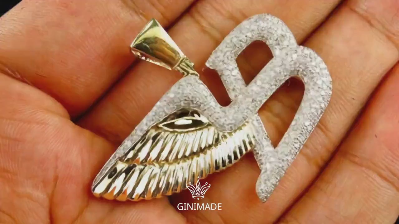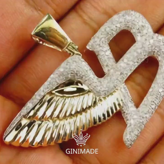 Make a bold statement with this Iced Out Custom Initial "B" Pendant featuring a stunning gold finish and angel wing design. Crafted with precision, this pendant is fully encrusted with high-quality clear CZ stones, giving it a luxurious, sparkling look from every angle.