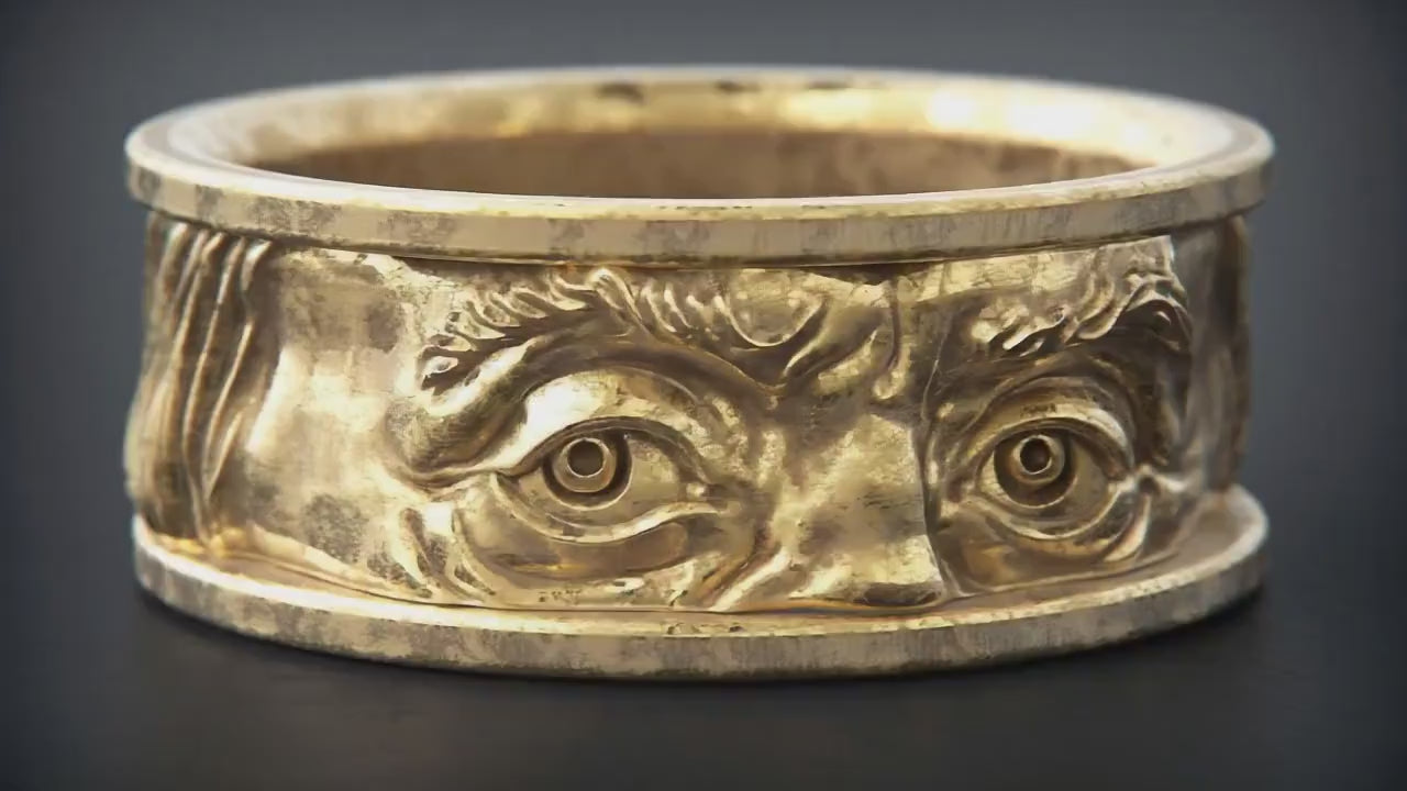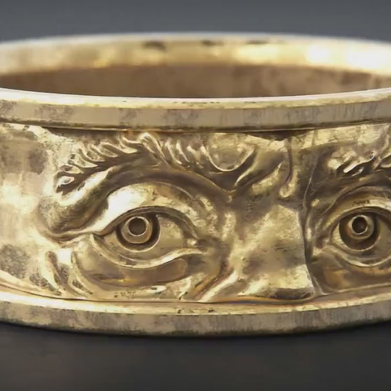 Franklin Eyes Ring | Bold Gold Face Ring | Handmade Sculpted Eye Band | GINIMADE Statement Jewelry | Gothic Men's Ring | Unique Artisan Ring