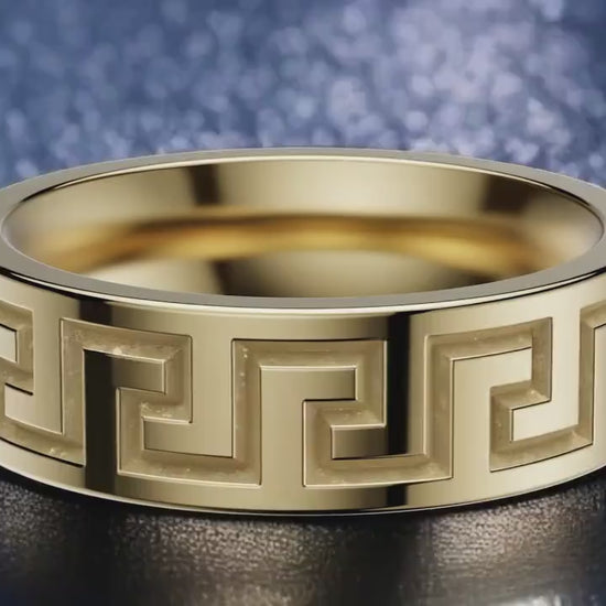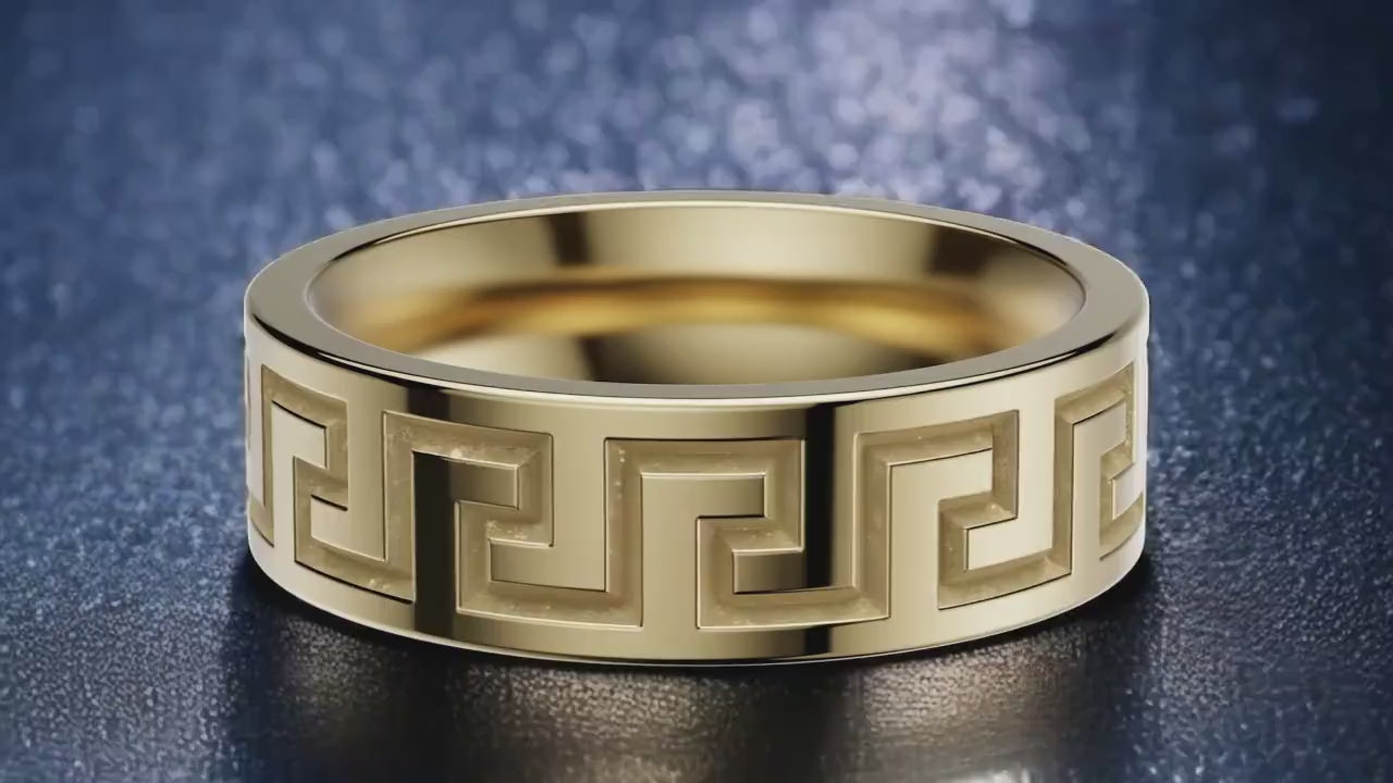 Greek Key Ring 925 Sterling Silver | Men’s Meander Pattern Band | Classic Greek Design Ring for Him | Unisex Silver Statement Jewelry