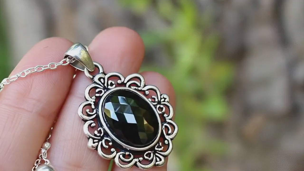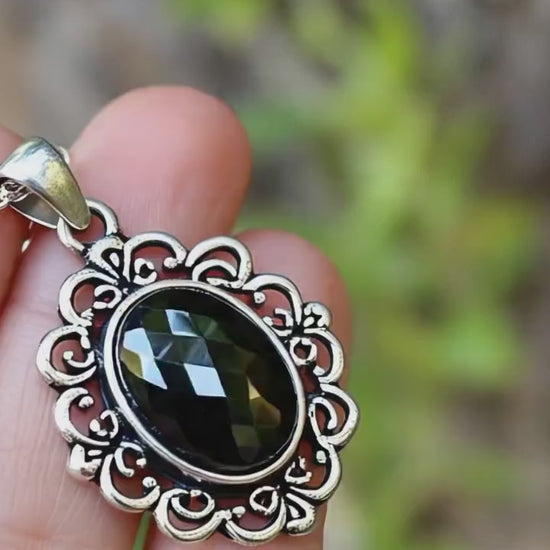 Elevate your jewelry collection with this handcrafted black onyx pendant set in intricate sterling silver filigree. Each piece is lovingly made by skilled artisans, blending traditional Indian craftsmanship with timeless elegance. The centerpiece—a faceted oval black onyx gemstone—adds a bold, grounding energy to your everyday look or special occasion ensemble.