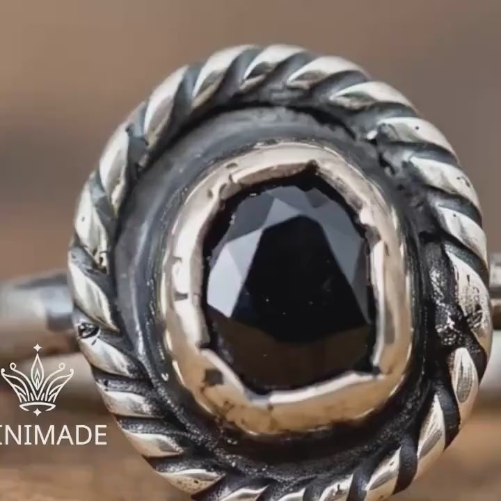 Handmade Oxidized Silver Black Onyx Ring • 925 Sterling Silver Gothic Statement Ring • Vintage Boho Jewelry • Unique Gift for her.