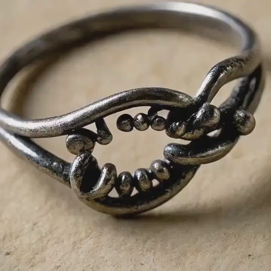 Handmade Oxidized Silver Ring with Open Abstract Design – Unique Organic Wire Art Ring – Rustic Artisan Statement Jewelry for Women