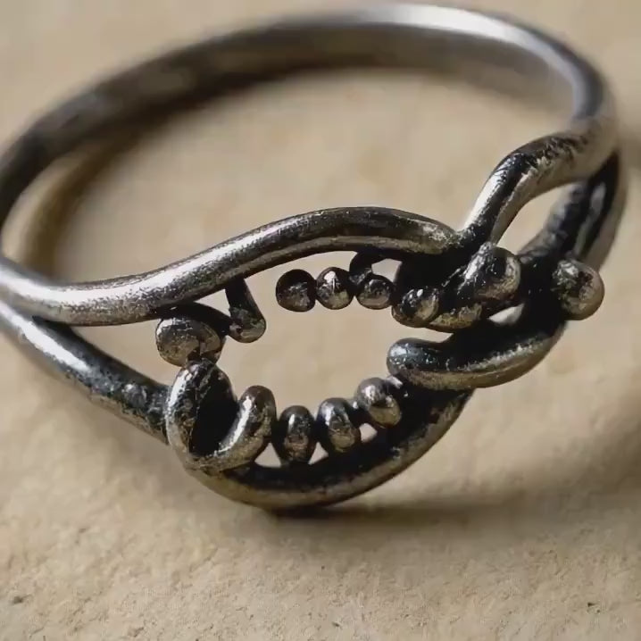 Each piece is artisan-made using 925 sterling silver, carefully oxidized for a vintage, rustic finish. The free-form structure and beaded accents make this ring one-of-a-kind, ideal for women who embrace individuality and artistic expression.