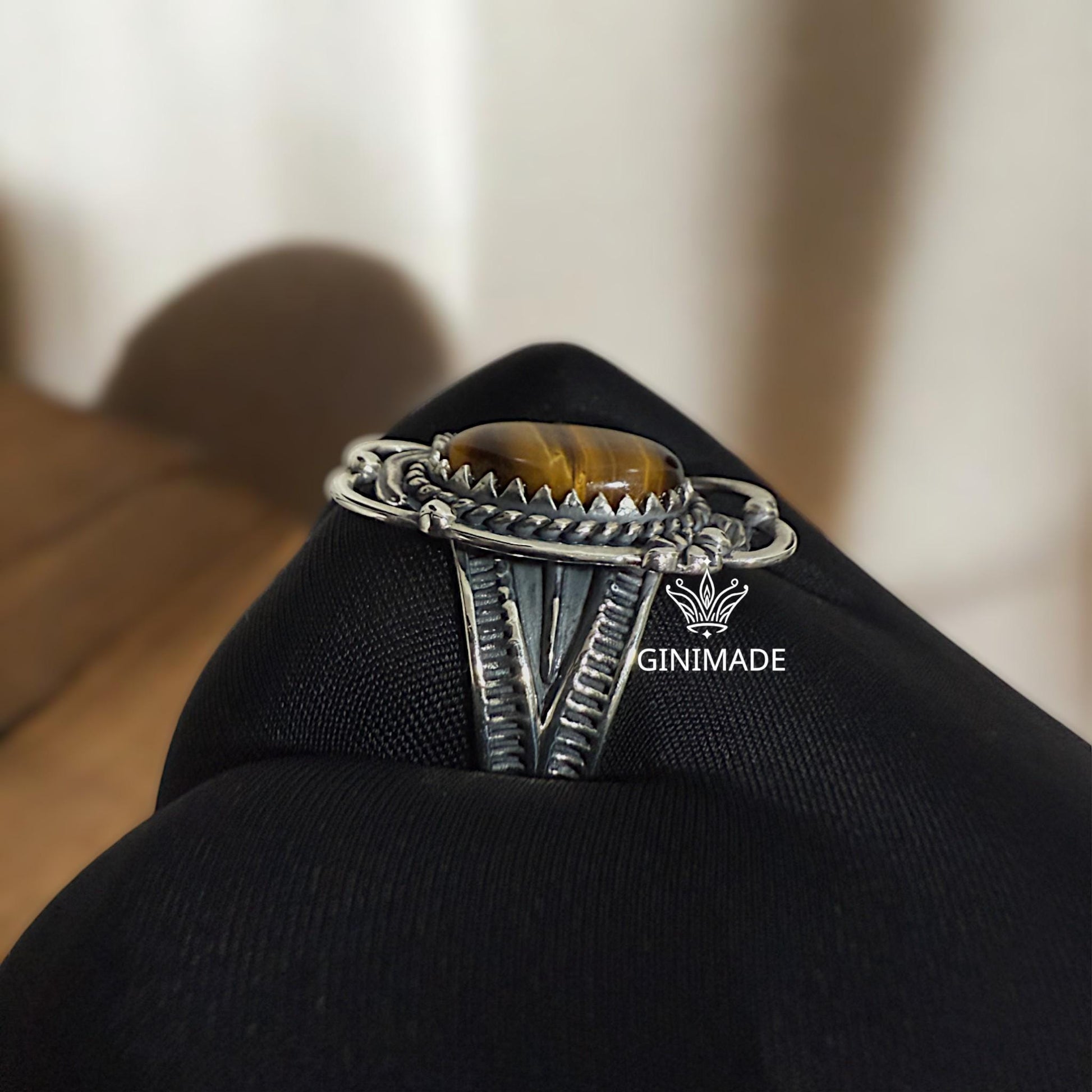 Handmade Tiger Eye Ring – Oxidized 925 Sterling Silver