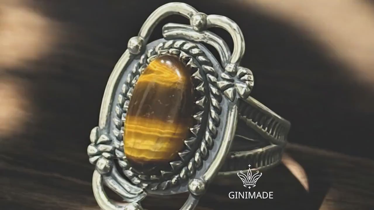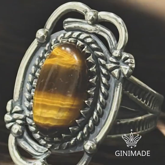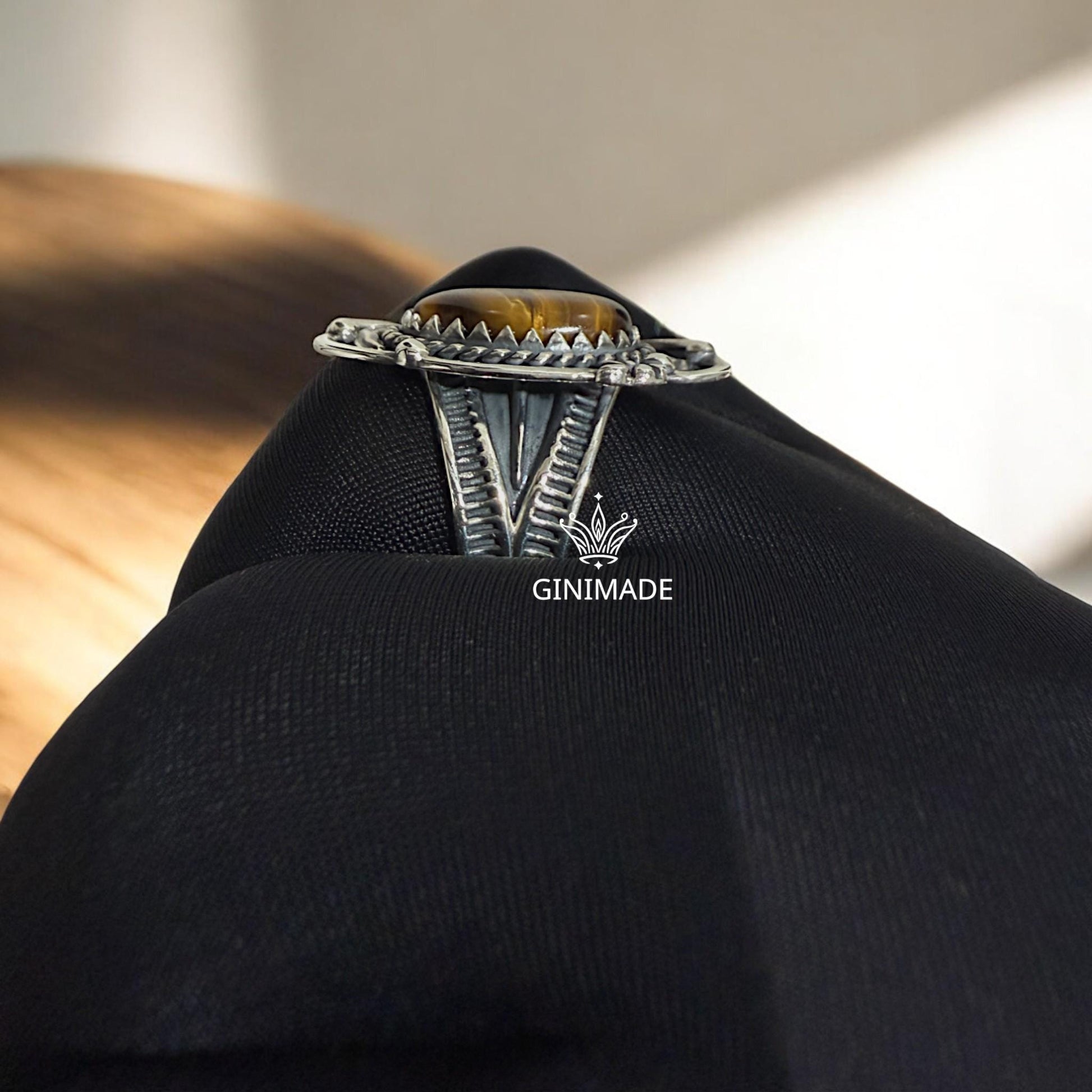 Handmade Tiger Eye Ring | Oxidized 925 Sterling Silver Ring | Boho Vintage Ring | Healing Gemstone Jewelry | Gift for Him/Her