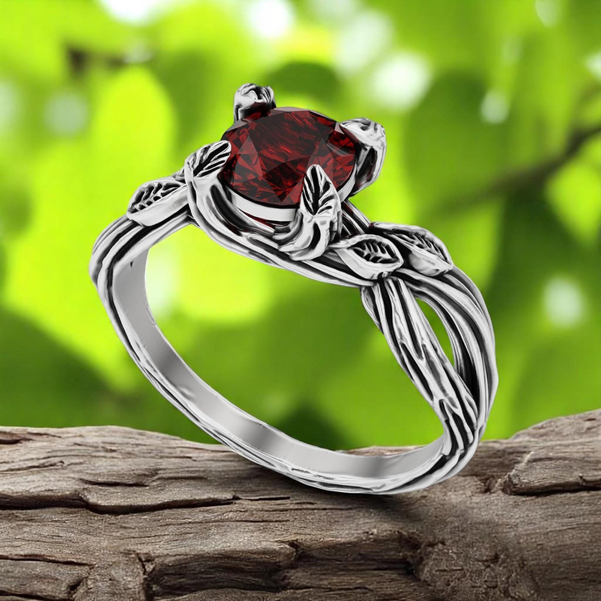Hessonite Garnet Leaf Ring • 925 Sterling Silver Nature-Inspired Engagement Ring • Boho Woodland Gemstone Jewelry • Gothic Wedding Ring