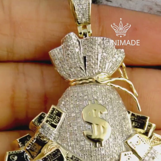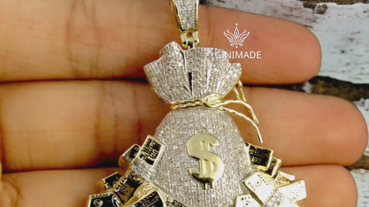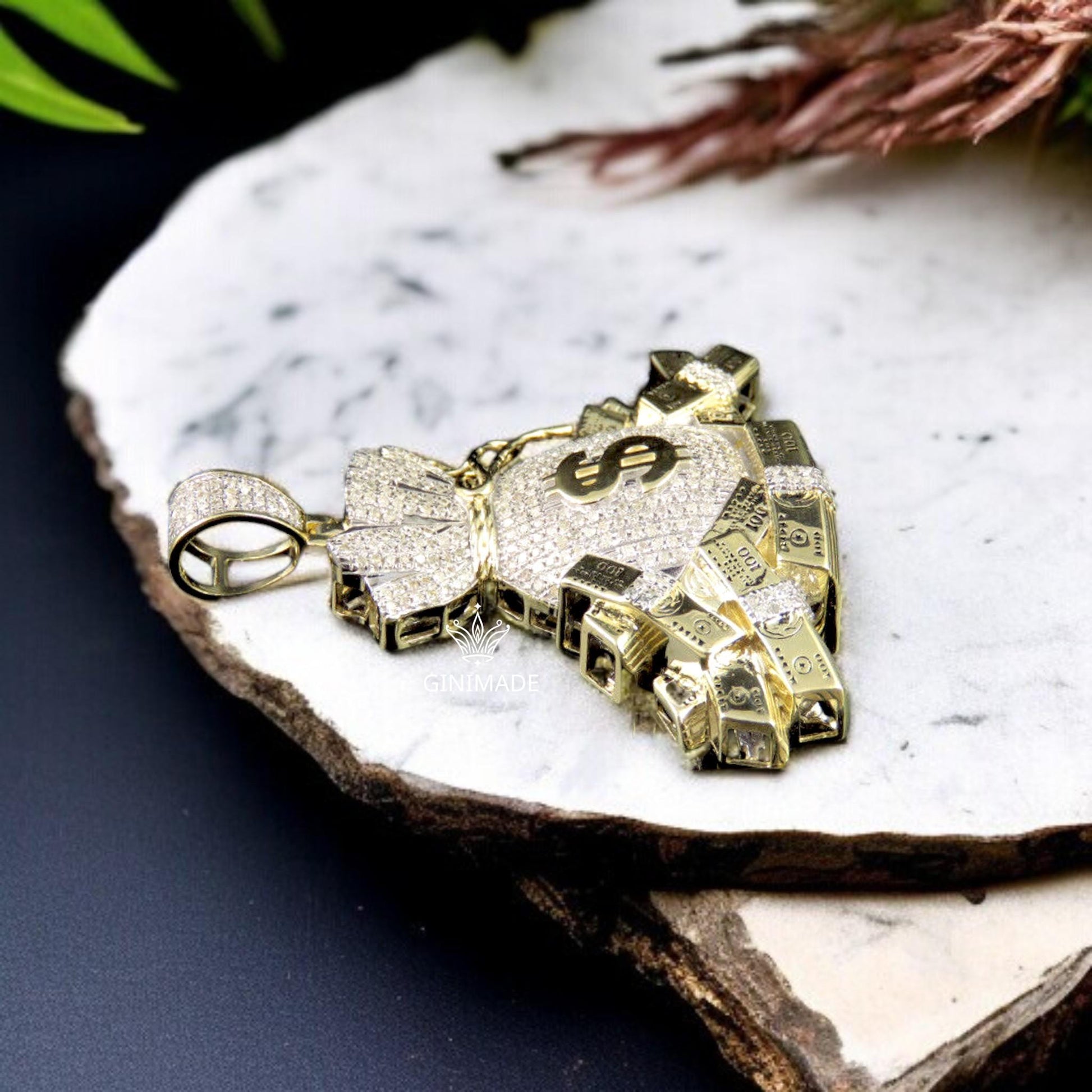 Money Bag Pendant with Dollar Sign β Iced Out Gold & Diamond Simulated Hip Hop Necklace | Statement Jewelry for Men
