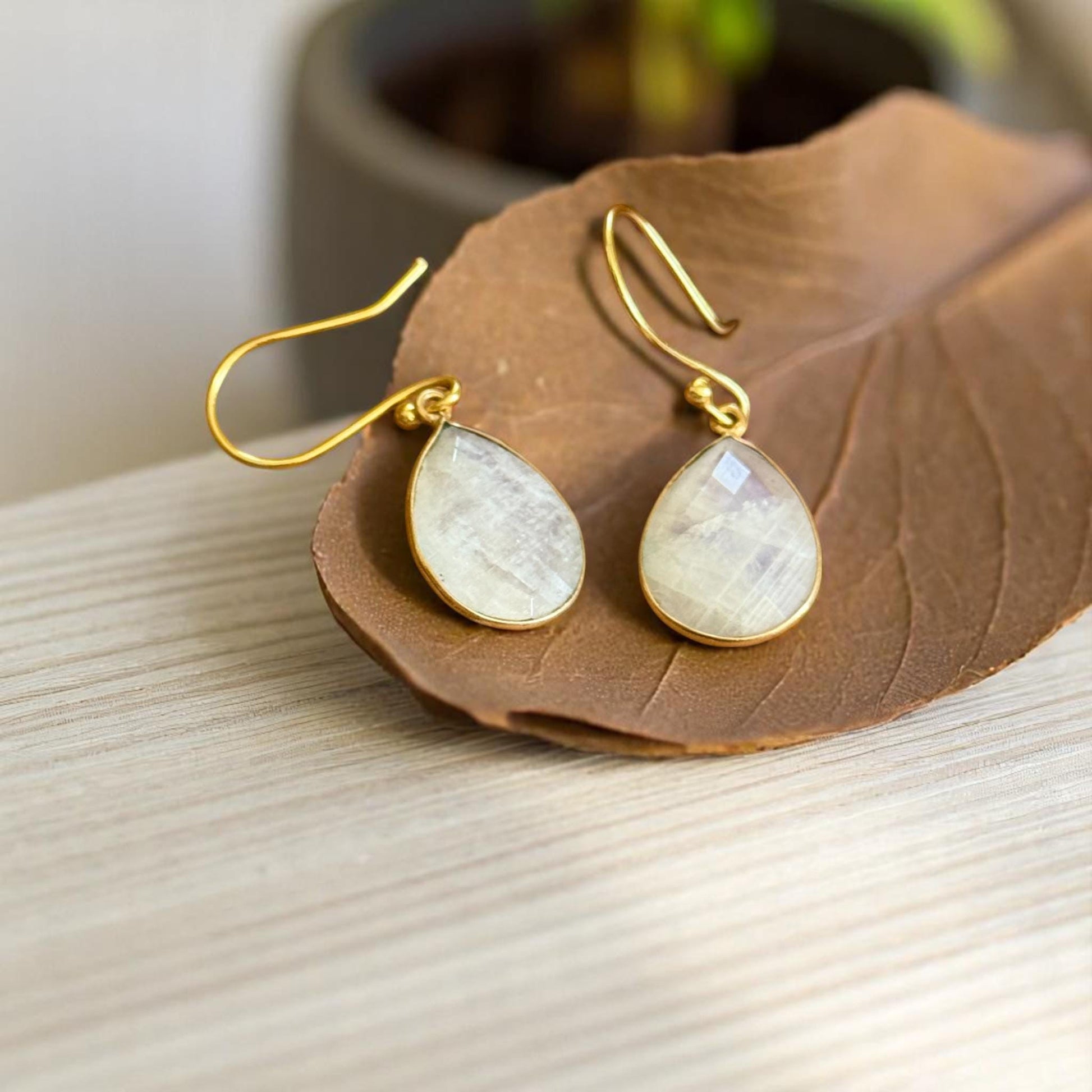 Moonstone Teardrop Earrings – Handmade 18K Gold Plated Dangle Earrings, Elegant Boho Jewelry for Women, June Birthstone Gift |Faceted