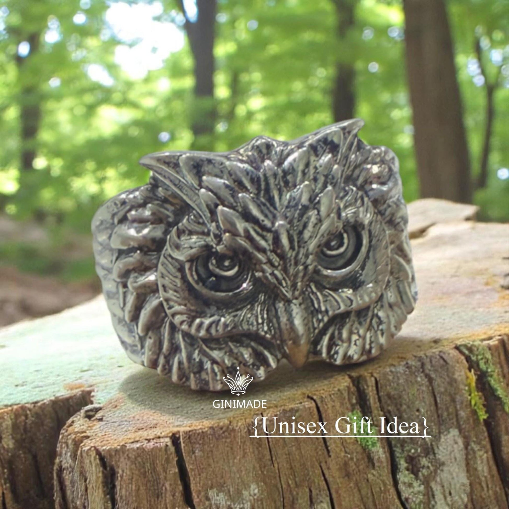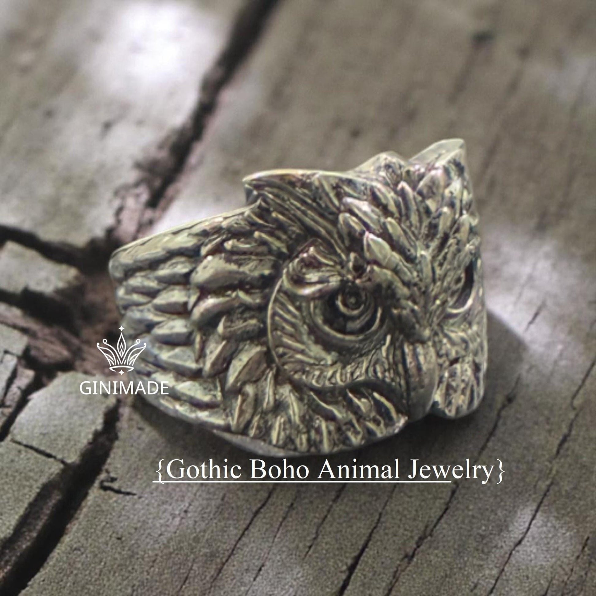 Owl Ring in 925 Sterling Silver | Unisex Handmade Bird Ring | Gothic Boho Animal Jewelry | Forest Nature Ring | Gift for Him or Her