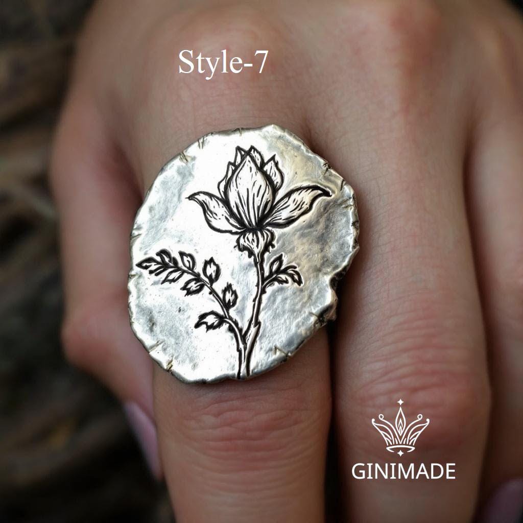 Personalized Birth Flower Ring • Handmade Family Birth Month Bouquet Ring • Engraved Floral Ring for Mom, Grandma, or Her