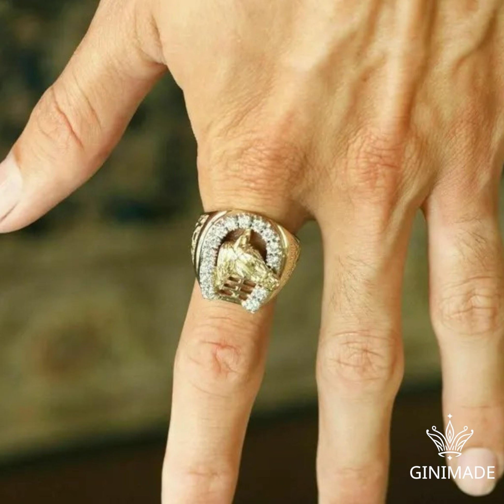 Personalized Elvis Horseshoe Ring – 925 Sterling Silver, Gold Plated, CZ Diamond Accents, Lucky Horse Jewelry, Western Statement Ring
