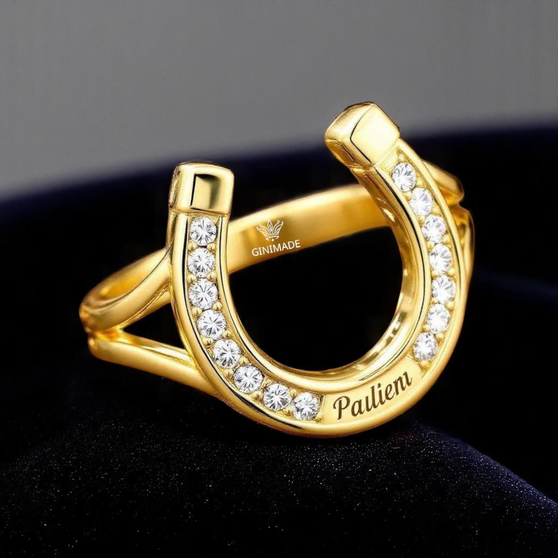 Personalized Elvis Horseshoe Ring – Gold Plated 925 Sterling Silver Western Statement Ring with CZ Diamonds, Lucky Horse. New on Etsy