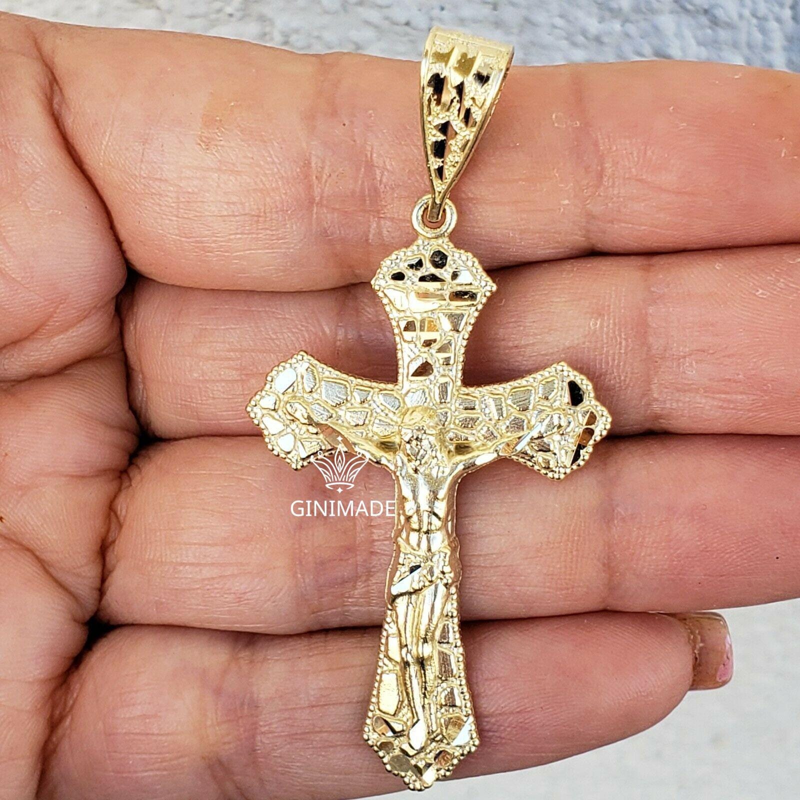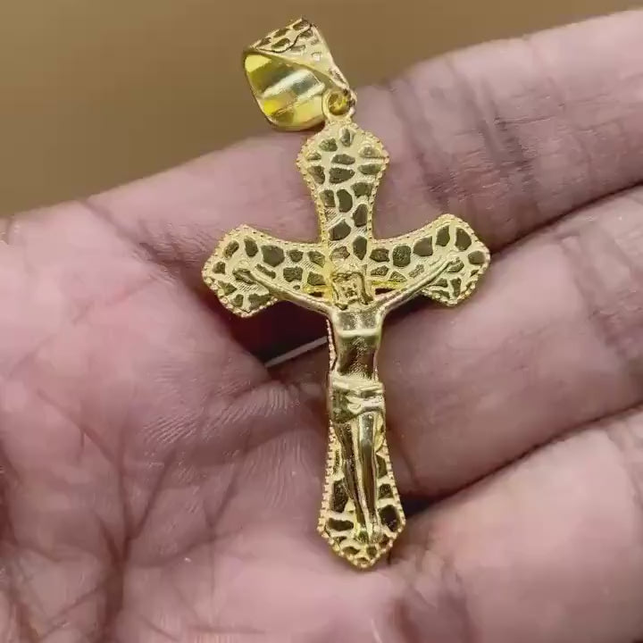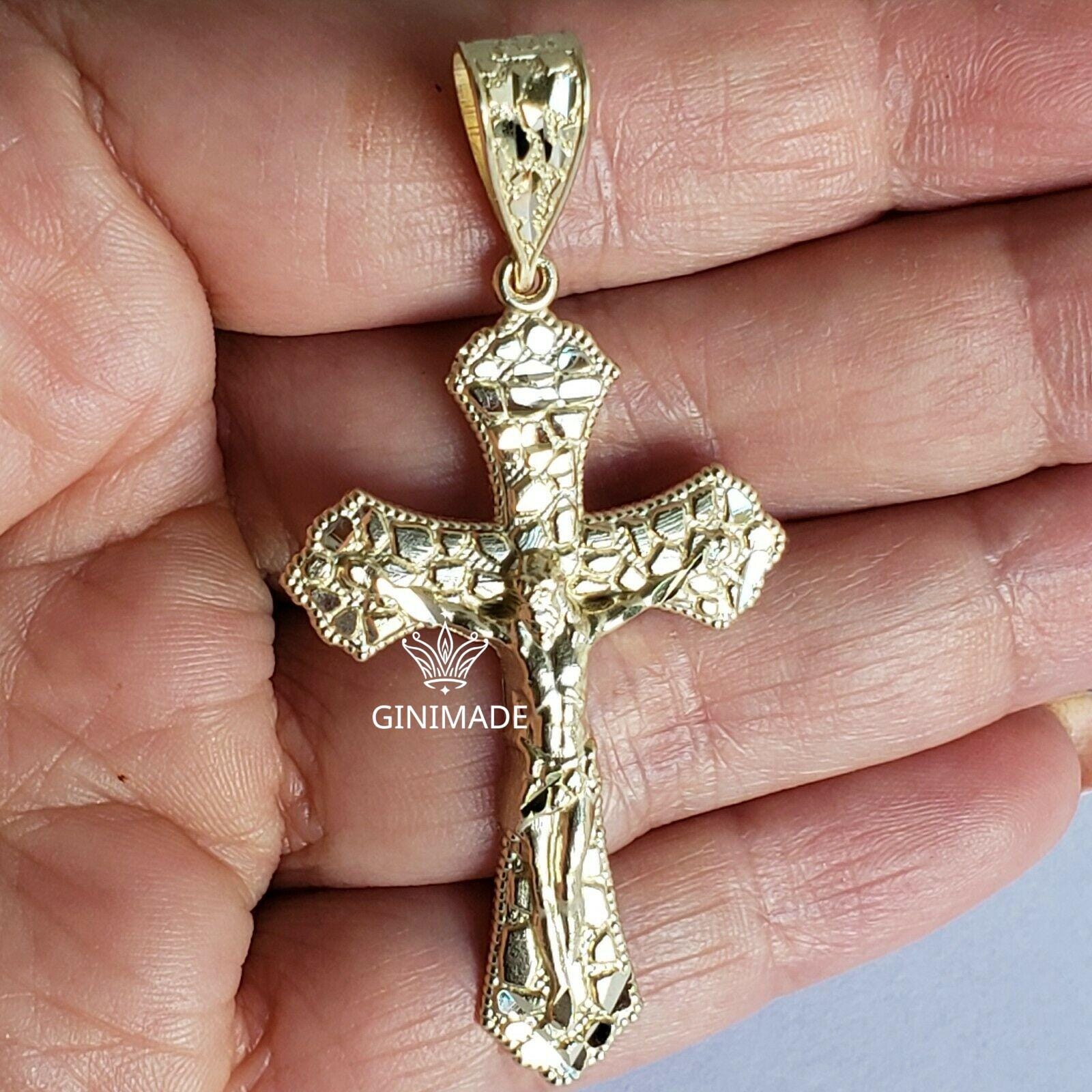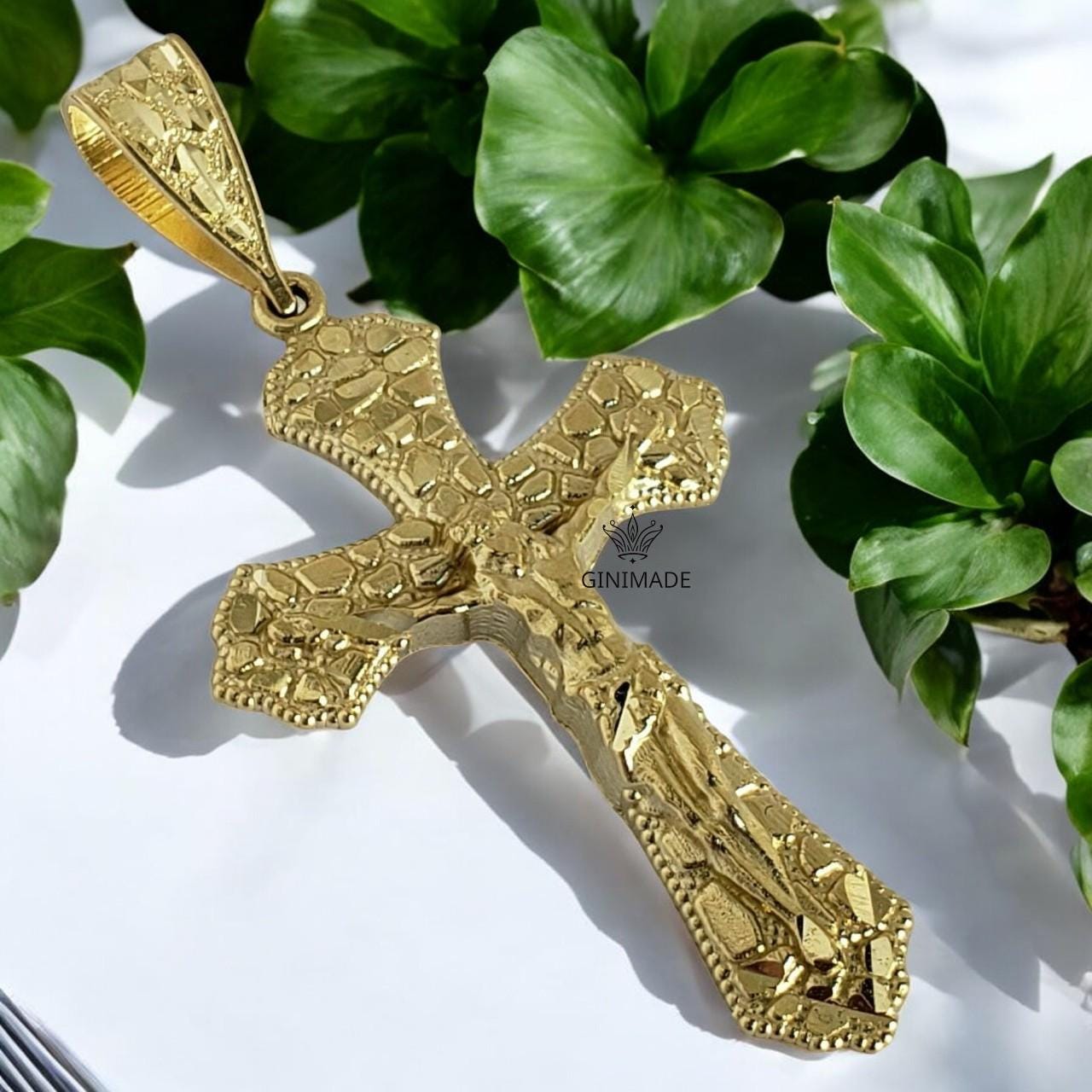 Embrace divine protection and timeless style with our Handmade 925 Sterling Silver Nugget Textured Crucifix Pendant. A symbol of faith, strength, and devotion, this intricately designed cross features a unique nugget texture, adding a bold and rugged touch to a classic religious icon. Perfect for both men and women, this pendant is a meaningful gift for yourself or a loved one.