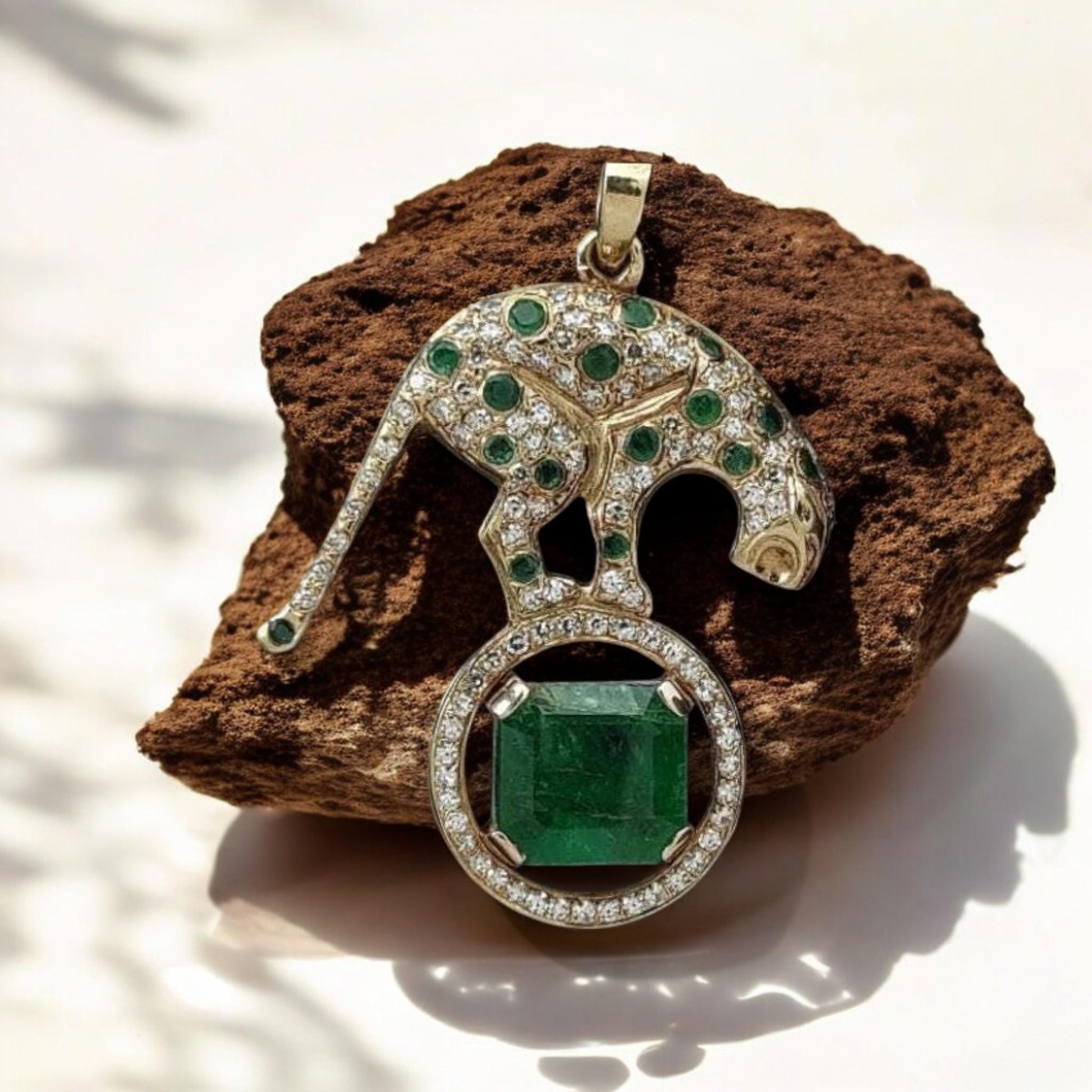 Celebrate bold elegance and wild spirit with this handcrafted panther pendant, made in luxurious 925 sterling silver and set with dazzling white stones and a genuine green emerald. This piece can be personalized just for you, making it a truly meaningful gift or keepsake.