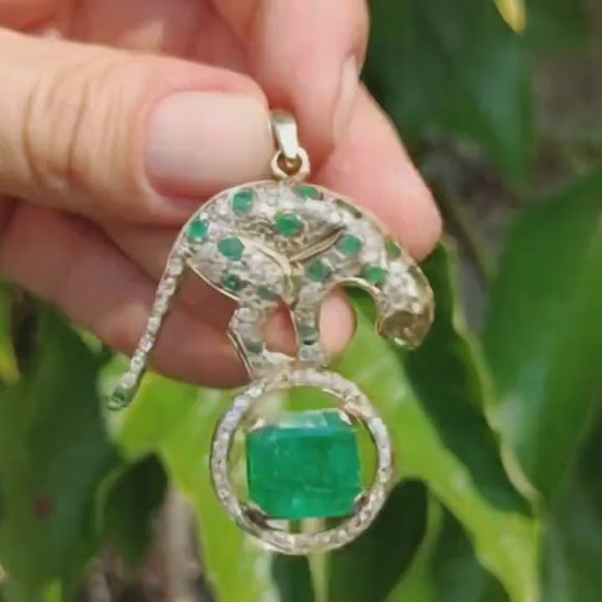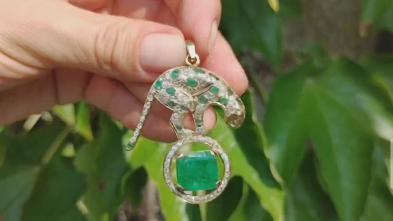 Personalized Panther Pendant with Natural Emerald | 925 Sterling Silver Animal Jewelry | Custom Jungle Cat Necklace | Gift for Her