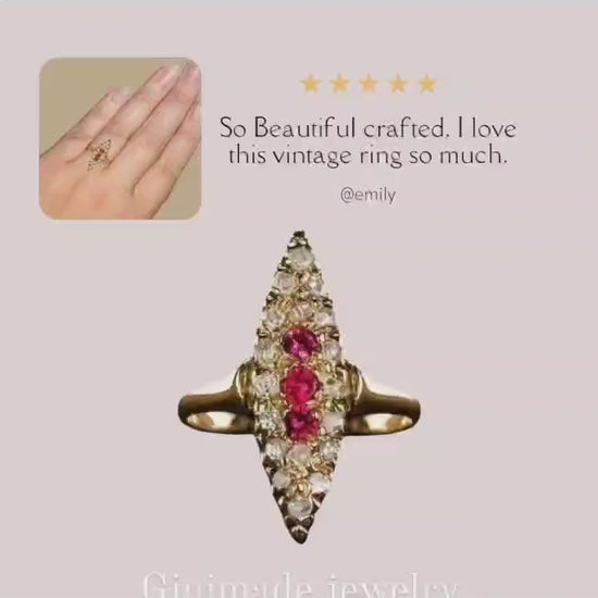 Unique 18k Gold-Plated Antique Silver Ring with CZ Ruby and CZ Diamonds – An Ideal Gift for Her