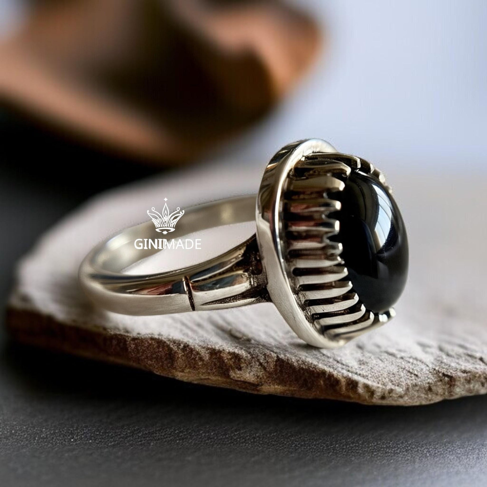 Unisex Black Onyx Silver Ring • 925 Handmade Gemstone Ring • Men's Statement Jewelry • Onyx Engagement or Promise Ring