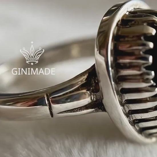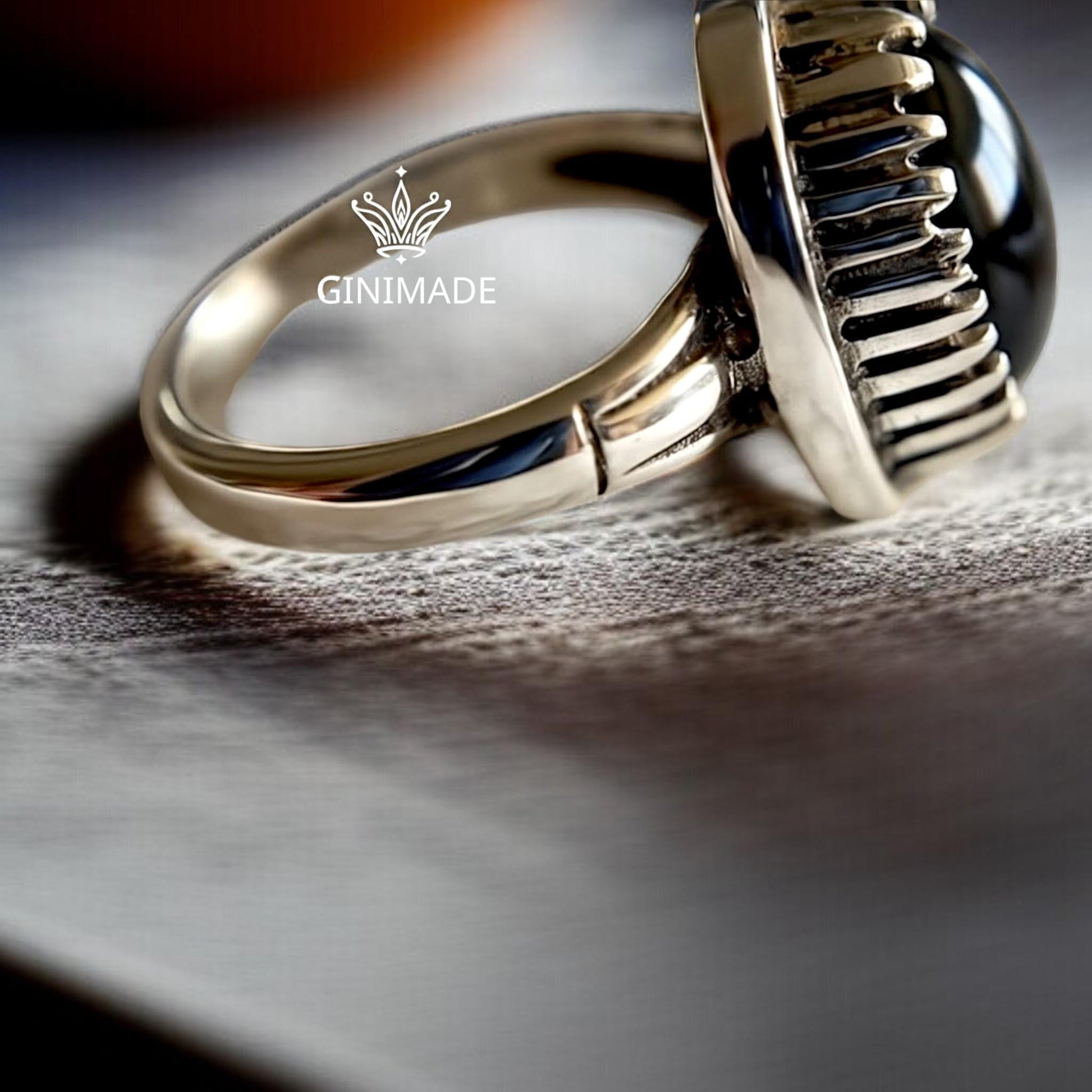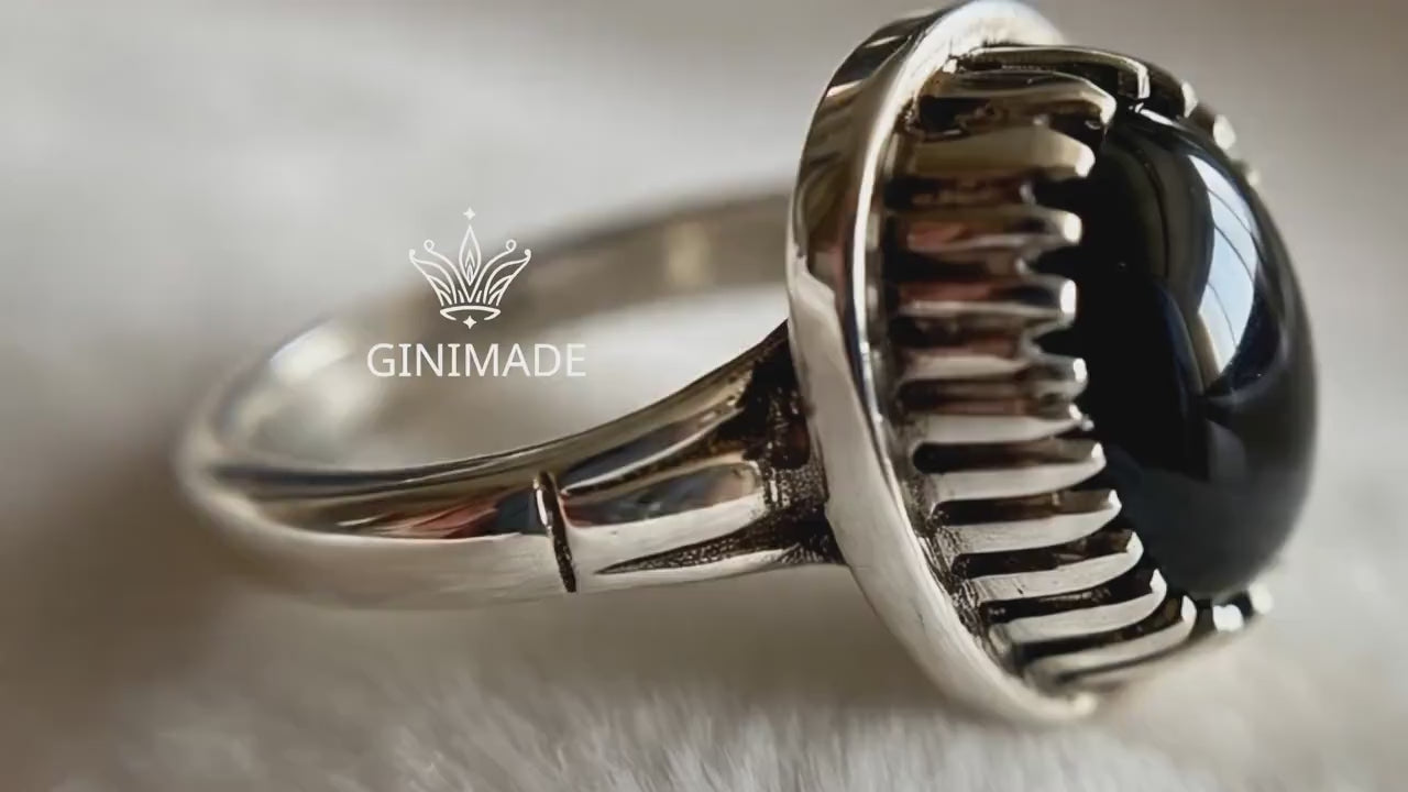 Elevate your style with this stunning handcrafted black onyx ring, made from solid 925 sterling silver. The bold, faceted oval black onyx stone is beautifully set in a vintage-inspired bezel, surrounded by intricate silverwork with oxidized detailing that enhances its antique charm.