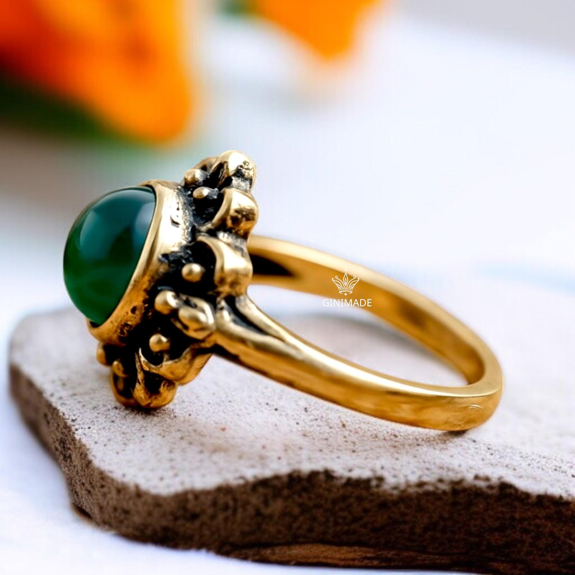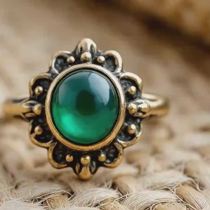 Vintage Emerald Ring β Natural Green Stone in 925 Silver β Boho Engagement or Promise Ring