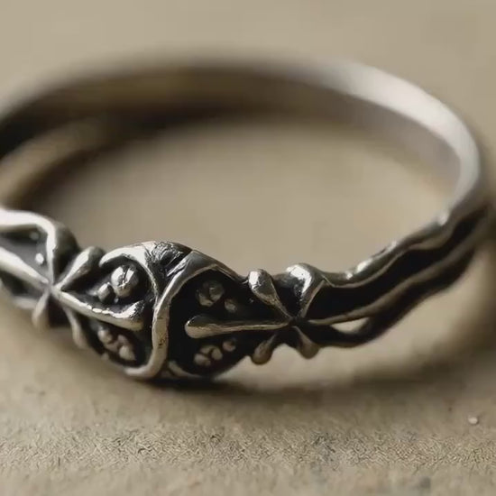 Vintage Floral Vine Ring | Antique Style Sterling Silver Band | Boho Nature-Inspired Statement Ring | GINIMADE Artisan Jewelry