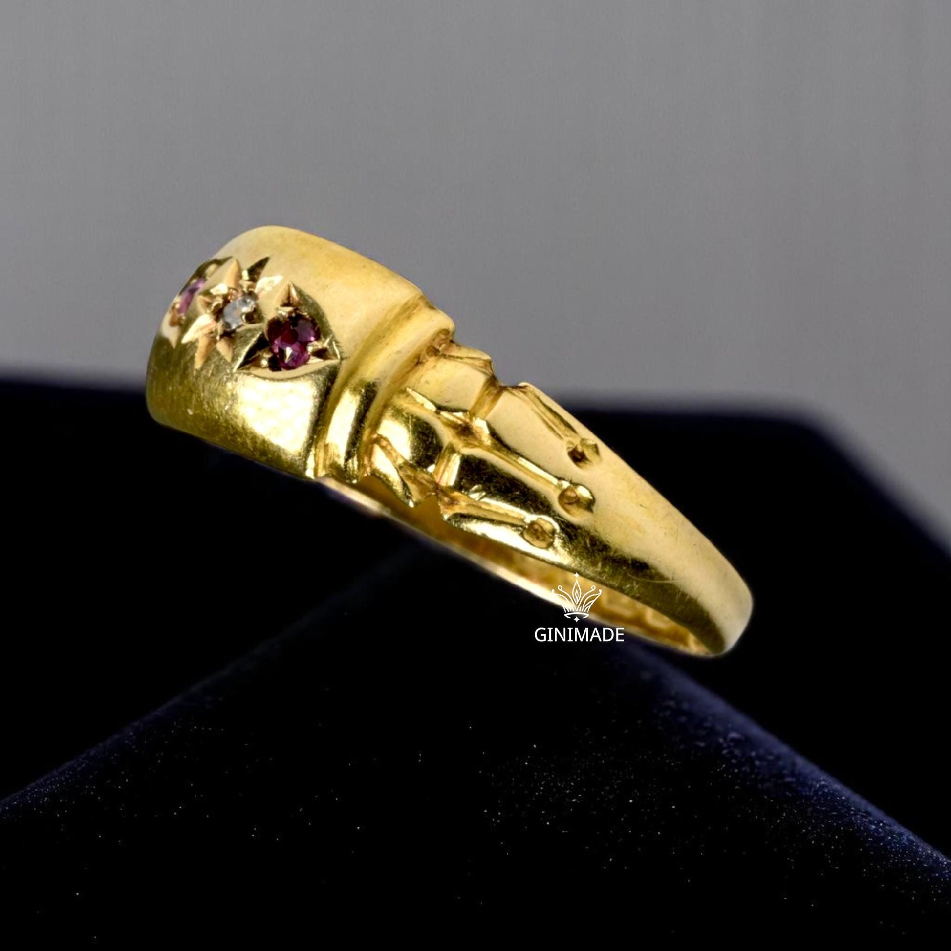 The warm gold finish gives this ring a rich, heirloom feel, while the celestial star setting adds a hint of magic and nostalgia. Whether worn as a standalone statement or part of a curated ring stack, this piece tells a story of romance, strength, and personal style.