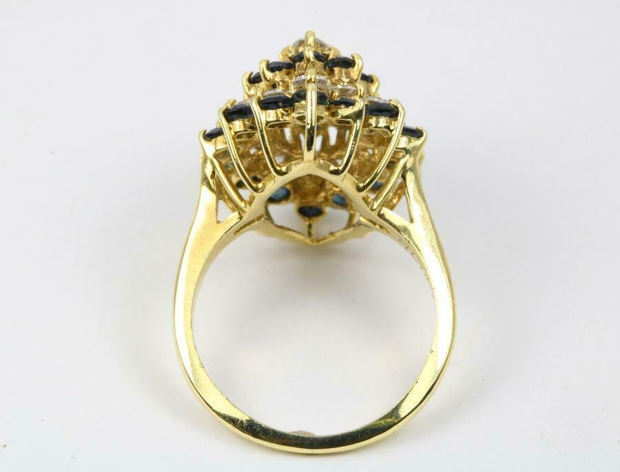 Stones: CZ Sapphire (center) and CZ Diamonds (halo and accents)